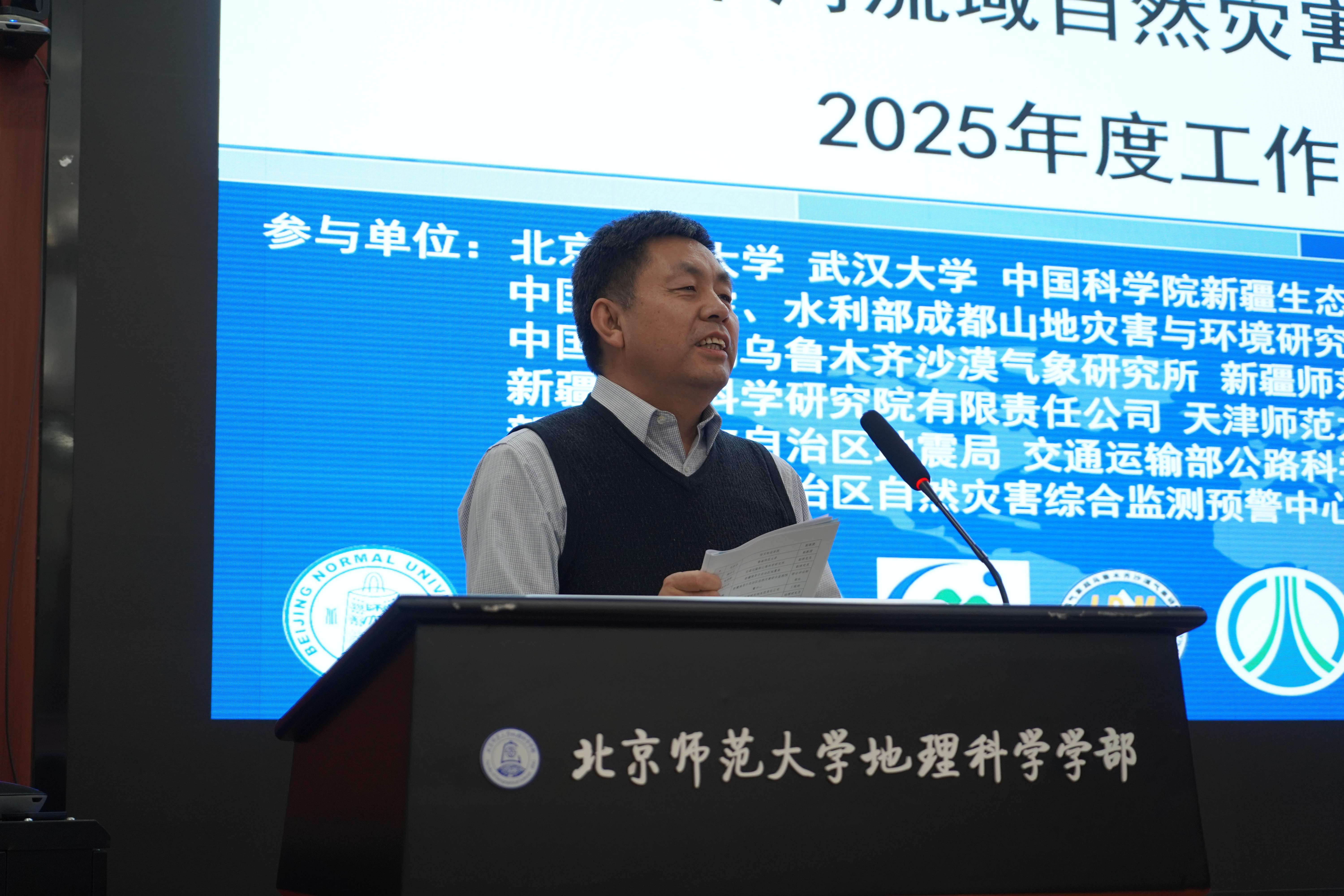 2026年1月15日-16日,第三次新疆综合科学考察“伊犁流域自然灾害调查评估”项目2025年度工作总结会议在北京师范大学顺利召开。会议邀请了中国科学院生态环境研究中心傅伯杰院士、中国科学院地质与地球物理研究所张小雷研究员、北京师范大学史培军教授、中国科学院新疆分院包安明研究员、中国地质科学院水文地质环境地质研究所石建省研究员5位专家。项目负责人、课题负责人及研究骨干总计40余人通过线上或线下的方式参加了会议。会议由项目负责人北京师范大学武建军教授主持。