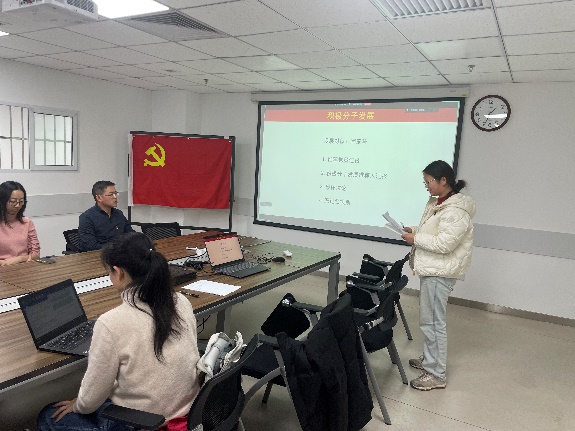 会议最后,推进入党积极分子培养发展工作。党支部副书记龚伟副首先介绍了积极分子推荐情况及相关人员基本表现,积极分子闫玉莹同志汇报了自身思想动态,分享了学习党的理论知识、践行先进党员榜样精神的感悟,郑重表达了自己的入党动机和坚定决心。随后,以无记名投票方式进行民主表决,一致同意接收闫玉莹同志为入党积极分子。