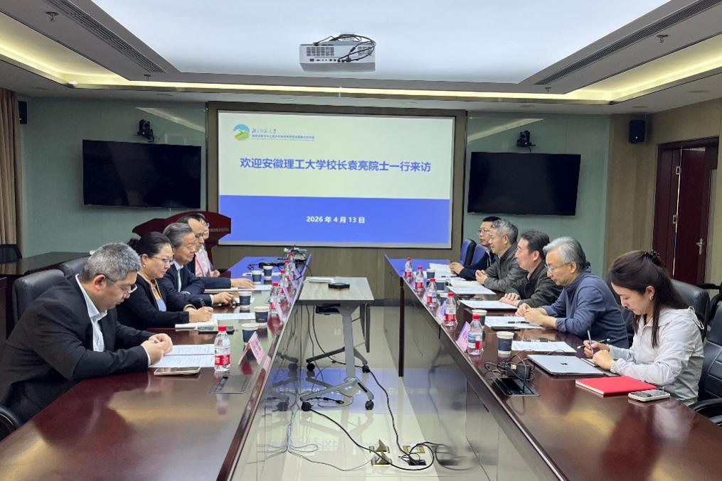 2026年4月13日下午,安徽理工大学党委副书记、校长、中国工程院院士袁亮,党委常委、副校长徐良骥,马克思主义学院党委书记李洁,合作发展处处长、校友办主任刘艳等一行到访地表过程与水土风沙灾害风险防控全国重点实验室开展交流。地理科学学部部长、实验室主任李小雁,副部长蒋卫国,实验室副主任贾坤,分析测试中心主任龚吉蕊、地理科学学部教授陈云浩及实验室办公室主任黄海青等参与接待。座谈会由李小雁主持。
