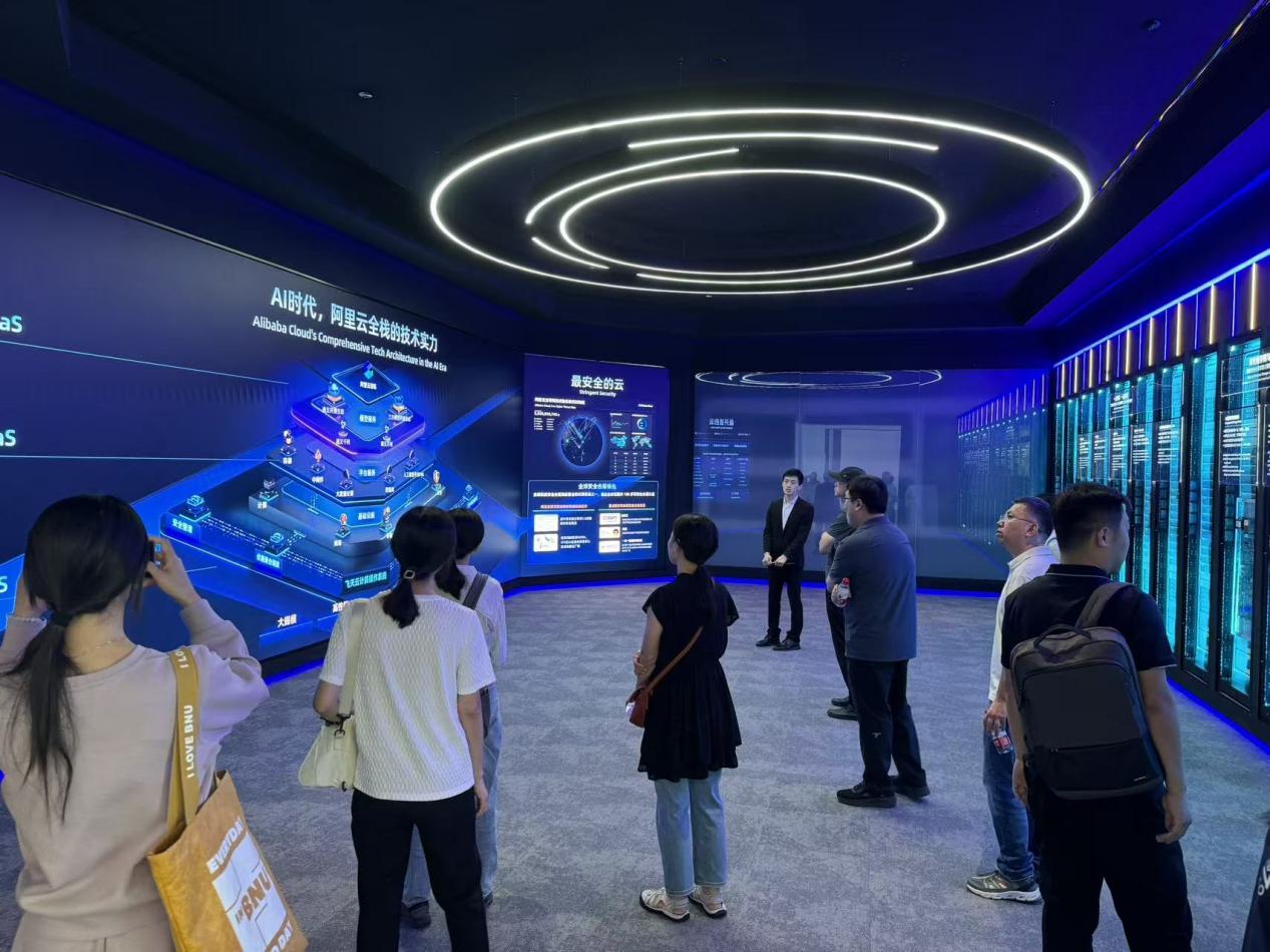 为推动学部产学研一体化工作,拓展学生生涯规划视野,促进地理学科与人工智能、云计算等前沿技术的深度融合,2025年9月9日下午,地理科学学部常务副部长吴云峰、党委副书记陈蓉蓉、学部班主任团队、辅导员李冀和胥孟希及学生代表前往阿里云(北京)参观学习交流。活动通过科技展厅参观、技术专题分享和校企合作研讨三个环节,为师生搭建了深入了解行业前沿的平台。