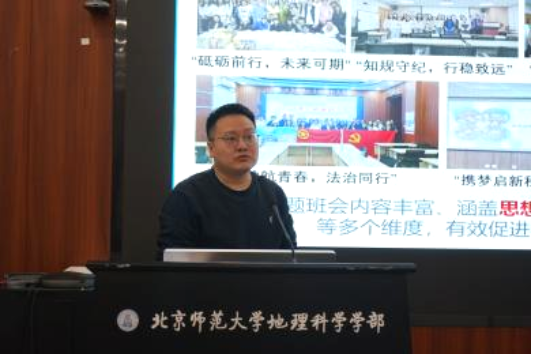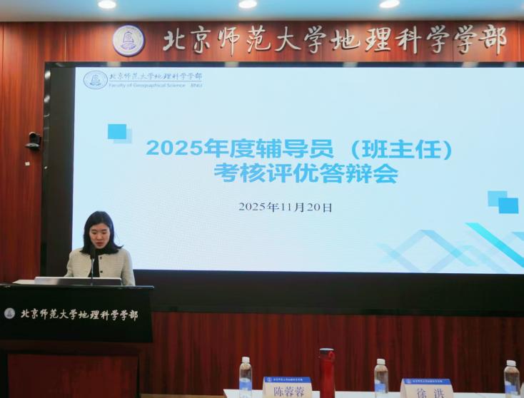 为深入落实立德树人根本任务,持续加强辅导员队伍建设,搭建育人经验交流平台,北京师范大学地理科学学部在生地楼180会议室举行2024-2025学年班主任考评答辩会。学部党委书记徐洪老师、党委副书记陈蓉蓉老师、党团学工办主任石月婵老师,以及往届本、硕、博优秀班主任代表朱忠礼老师、穆望舒老师和朱秀芳老师共同组成评审团,全体班主任参与答辩。会议由陈蓉蓉副书记主持。