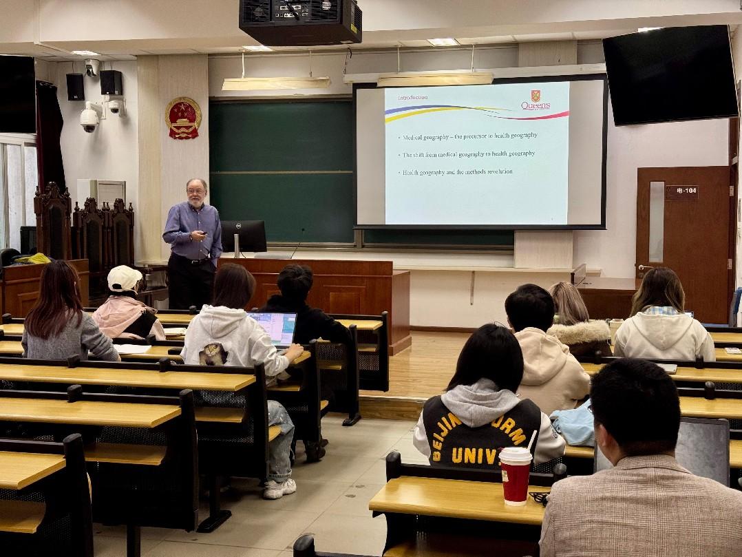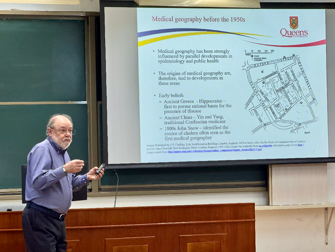 2025年10月27日,国际知名健康地理学家、加拿大女王大学Mark Rosenberg教授作了题为“Progress in Health Geography”的专题报告。讲座由程杨教授主持,人文地理学专业部分研究生和本科生参与了此次讲座。Rosenberg教授首先回顾了医学地理学的发展历程,系统阐述了1950至1970年代医学地理学的核心议题,包括疾病空间分布与生态学分析、医疗资源地理分布的公平性与可达性,以及通过地图绘制和统计方法揭示疾病模式与区位影响。Rosenberg教授进一步探讨了自1980至1990年代医学地理学研究向健康地理学的转变。随着WHO对“健康”概念的新定义,健康地理学更加注重社会理论、“地方”意义及其与“空间”的辩证关系,并比较了地方效应与个体效应在理解不同尺度健康差异中的作用。在健康地理学方法部分,他介绍了人口健康调查、GIS、空间统计与多层模型等定量方法和民族志、深度访谈、参与式观察研究等定性方法在社会资本、医疗服务体系、疗愈景观、具身地理、残疾群体等议题的研究。最后,Rosenberg教授总结指出,医学地理学侧重于理解疾病与医疗资源的地理分布,而健康地理学进一步强调“地方”的意义,并运用定性与定量方法,从个体层面和群体层面开展健康和医疗服务的研究。在交流讨论环节,同学们聚焦空间的内涵、具身认知在疗愈景观研究的应用等话题向Rosenberg教授提问,并获得了详尽的回答。