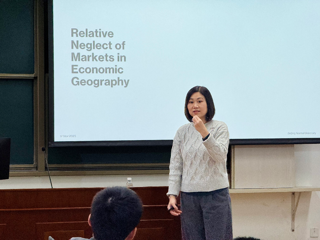 2025年11月17日,英国杜伦大学地理系Karen Lai教授作了题为“Studying Markets in Economic Geography: Theoretical and Methodological Approaches”的专题报告。讲座由程杨教授主持,人文地理学专业郑龙飞老师、部分研究生和本科生参与了此次讲座。Lai教授指出,长期以来经济地理学受“生产主义”取向主导,相对忽视了对市场的关注;而近年来,学界正重新将“市场”纳入核心议题,既将其视为一种抽象的制度逻辑,也关注其在具体时空中的物质化实践。Lai教授借助丰富的文献积累,系统梳理了三种主要理论视角:地理政治经济学(Geographical Political Economy)、文化经济学(cultural economy)和女性主义经济地理学(feminist economic geography)。基于此,她运用全球钻石市场的案例,生动地展示了如何运用不同理论分析同一个经济现象。最后,Lai教授介绍了定量网络分析、文本与话语分析、深度访谈、民族志观察、参与式日志及行动研究等方法在经济地理学的市场研究中的应用。在交流讨论环节,同学们聚焦经济地理学对学科的知识溢出、经济地理学研究方法在不同研究问题中的应用等话题向Lai教授提问,并获得了深入的回答。