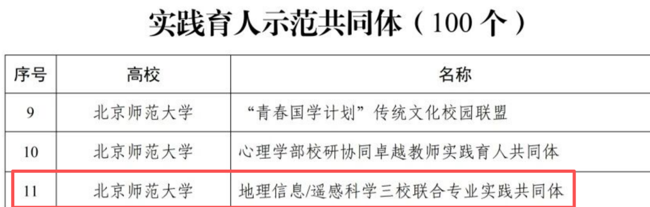 近日,北京市委教育工委公布“时代新人强国行”实践育人“四个100”交流展示活动入选名单,地理科学学部的“地理信息/遥感科学三校联合专业实践共同体”入选“实践育人示范共同体”,充分彰显了学部教师深耕专业育人、聚力协同创新的责任担当,以及在实践育人体系建设与人才培养模式改革上的扎实成效。