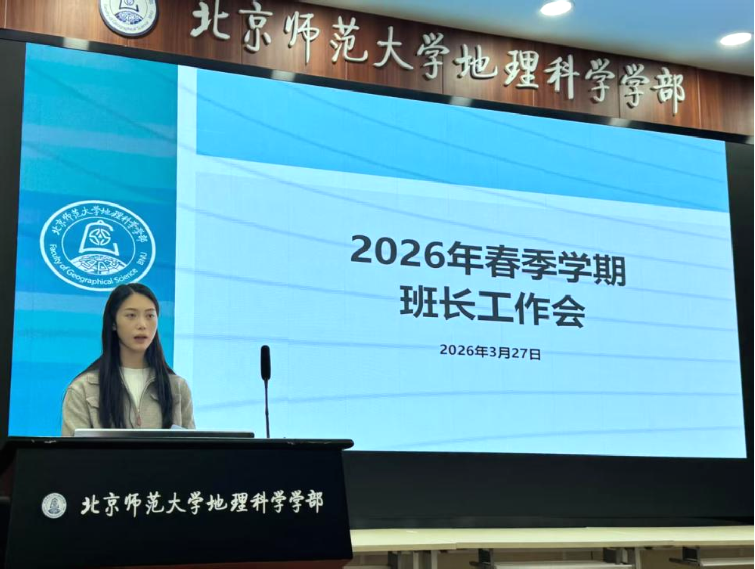 2026年3月28日中午12:30,地理科学学部2026年春季学期班长工作会在生地楼180会议室召开,党团学工办李骜老师、胥孟希老师及本研全体班长参与本次会议。
