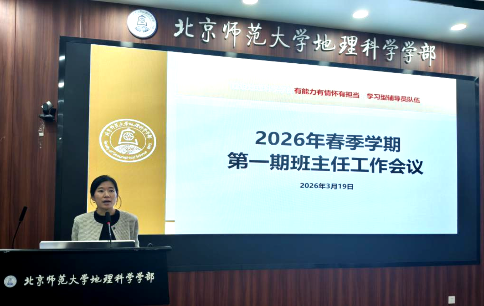 会议最后,陈蓉蓉副书记作总结讲话,她以“云程发轫,骐骥驰骋”寄语全体班主任,希望大家以此次会议为契机,切实履行班主任岗位职责,将就业帮扶、安全稳定、班级建设等各项工作落细落实,以高度的责任心和使命感做好学生的引路人与守护者,凝聚育人合力,持续提升学部学生工作质量,为地理科学学部高质量发展和学生全面成长成才筑牢坚实基础。