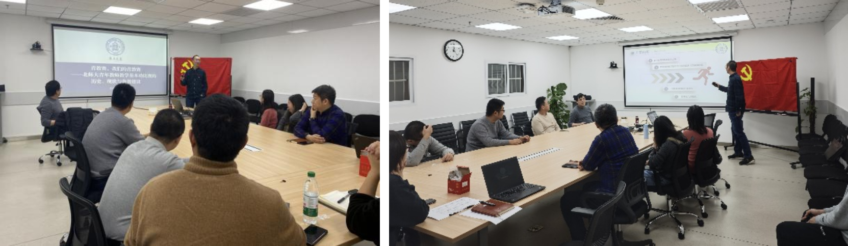 2025年12月9日,地理科学学部地表综合党支部在京师科技大厦628会议室顺利举办青年教师基本功大赛参赛经验分享活动。本次活动特邀在北京高校第十四届青年教师教学基本功比赛荣获了三等奖(理科组)的刘志锋老师和李琰老师分享参赛经验,支部16名党员参与活动,由支部委员穆望舒老师主持。