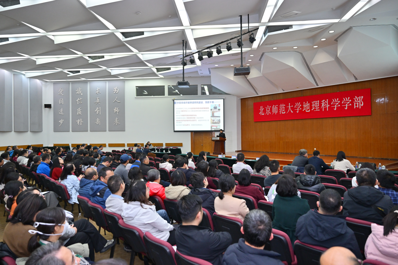 2025年10月30日下午,地理科学学部行政班子届满述职考核会暨全体教职工大会在英东学术会堂召开,学部党政领导班子成员及全体教职工参加。学校机关党委常务副书记兼党委组织部副部长徐艳华,副教务长兼教务部(研究生院)质量处处长魏浩,人才人事部人才工作办公室主任霍守亮,实验室安全与设备管理处处长兼分析测试中心主任左锐,党委学生工作部副部长兼管理处处长、党委武装部部长陈金波共五位老师组成学校党委考核组出席会议。会议伊始,学校党委考核组组长徐艳华介绍了考核组成员、测评要求并主持述职考核环节。
