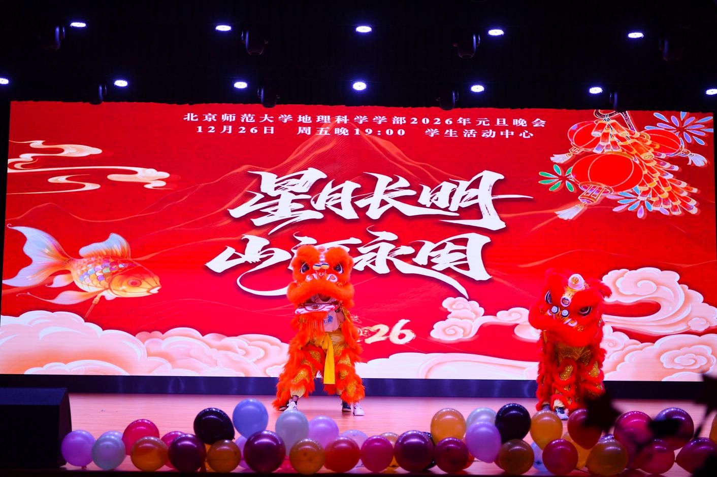 晚会分为“星启华章”“月映生辉”“山岳千秋”“河泽绵长”四个板块十七个节目,除了传统的舞蹈、独唱、合唱、魔术、吉他弹唱、歌曲串烧外,创新性地融入了传统舞狮表演,增添了浓郁的新年喜庆气息;现场还设立了“经纬杯”地理知识竞赛元旦庆典专场,彰显出独特的地理学科特色,为观众带来了一场异彩纷呈的视听盛宴。