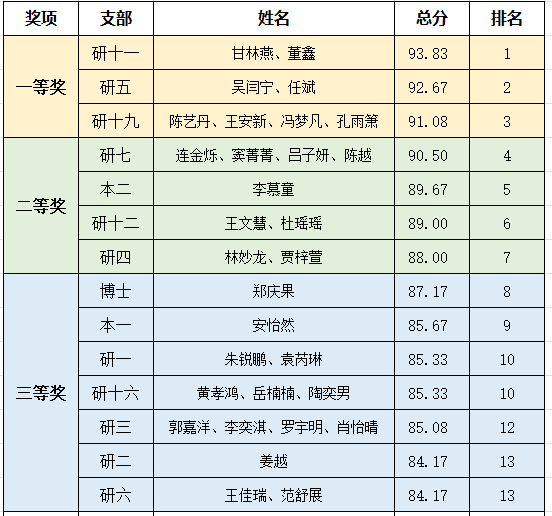 获奖名单