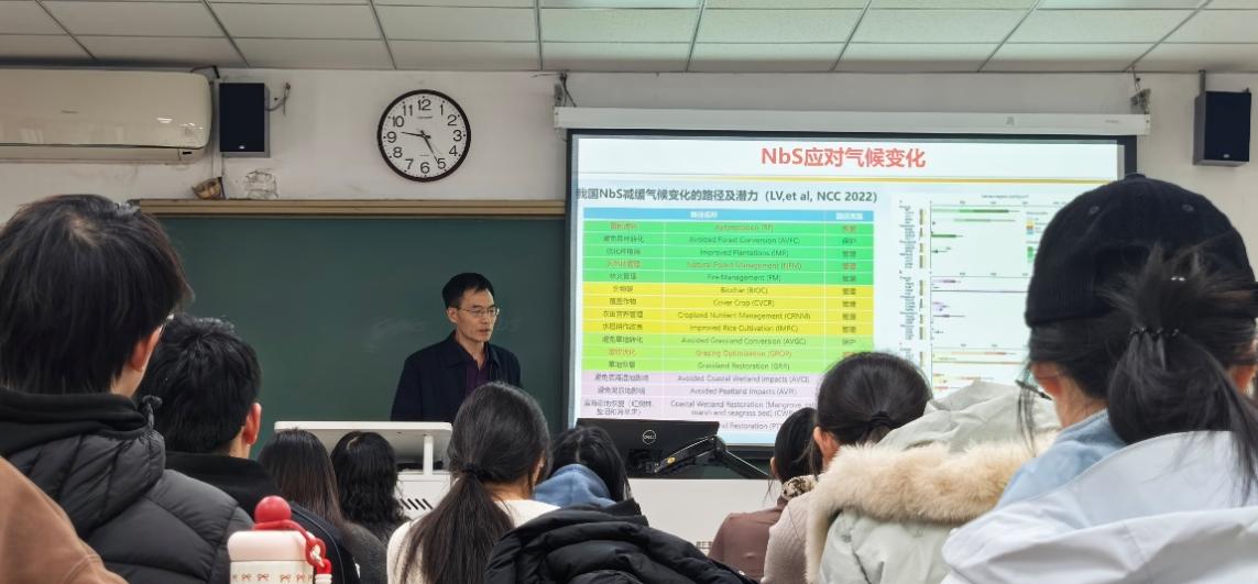 2025年12月10日上午,地理科学学部自然资源学院在北京师范大学教二楼408教室顺利举办资源科学前沿系列讲座第13期。本次讲座由刘颖慧教授主持,邀请了自然资源部国土整治中心王军研究员担任主讲嘉宾。讲座围绕基于自然解决方案(NbS)的发展与应用主题展开,40余名师生在场聆听。