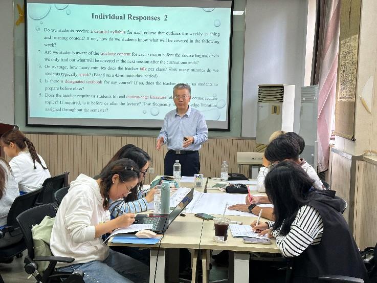 9月19日下午,国际中文教育学院李娜老师以《中国语言文字》为题,介绍了汉字的发展演变,带领学员探寻汉字的历史源流与文化意蕴。9月22日上午,地理科学学部黄甘霖老师以“城市,共创未来”为主题,启发学生以团队协作形式绘制海报,思考城市可持续发展的关键要素,鼓励青年以全球视野关注人类共同的城市命运。9月22日下午,教育学部黄宇老师主讲《中国教育发展:基本背景、现实方位与近景前瞻》,从宏观视角梳理中国教育的历史演进与改革趋势,深入阐释中国教育现代化的战略方向与国际影响。9月23日下午,教育学部朱志勇老师聚焦“基于学生视角的大学课堂教学反思”这一话题,基于问卷调查、海报绘制、小组汇报等互动形式,鼓励学员以批判性思维反思教学过程,引导学生思考创新教学模式。