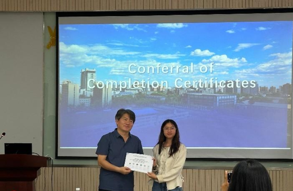 结业仪式上,董孝斌老师与广岛大学的带队老师共同为学员们颁发了结业证书。蔚佳琦老师准备了象征中秋团圆的中国传统美食——月饼,让师生共同沉浸在团圆祥和的节日氛围中。随后,师生互赠纪念品,用一张张合影定格下这动人的瞬间,不仅为此次交流画上圆满句号,更象征着一段跨越国界的友谊与文化共鸣的延续。
