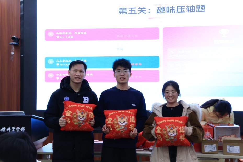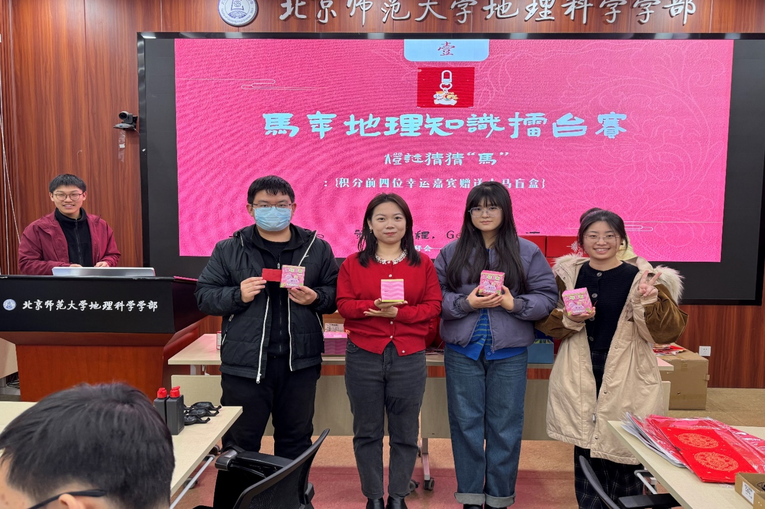 “万马奔腾声震天,黄河至此一线悬”打一地理景观、“老马识途,方向不迷”打一地理工具、“马奔美洲两大洋”打一国家名称……一道道妙趣横生的题目引发师生踊跃抢答。答对题目的师生领取小马生肖钥匙挂件,现场笑声与掌声此起彼伏,在轻松互动中巩固专业知识,展现地理人的学科底蕴。