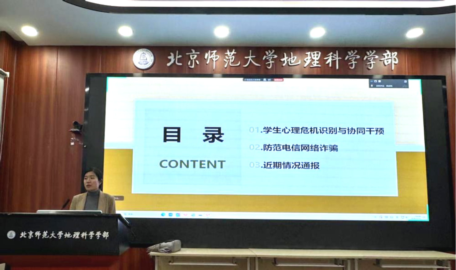 会议第二项,北太平庄派出所宁宁警官开展防范电信网络诈骗专题宣讲。警官结合校园高发诈骗案例,详细拆解刷单返利、冒充客服、校园贷、虚假求职等常见诈骗手段,普及反诈防范技巧、应急处置方法与举报渠道,提醒班主任常态化向学生普及反诈知识,守好学生财产安全底线,全力压降校园诈骗案件发生。