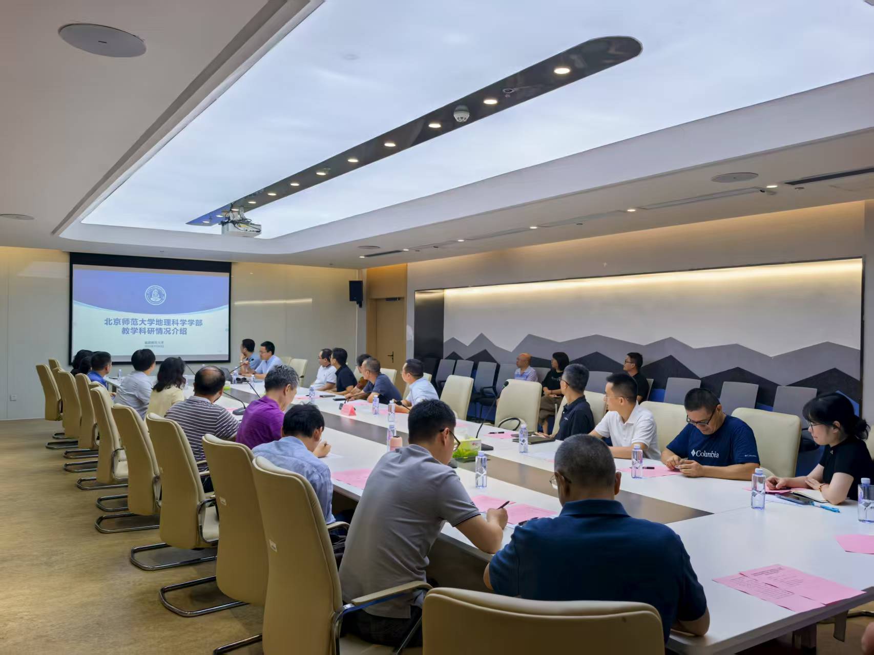 9月4日下午,老师们来到福建师范大学地理科学学院、碳中和未来技术学院,与吴福忠院长、王强副院长、各系各专业负责人及教师代表进行座谈交流。吴福忠院长首先介绍了福建师范大学地理各专业建设、师资队伍和科学研究等情况。接下来,潘峰华副部长和程杨院长分别介绍了地理科学学部的学科建设情况和地理学院的教学科研特色。随后,两校教师就地理学科发展进行了深入探讨和交流,双方均表示,希望在今后的教学和科研工作中加强合作,共同推动地理学科的高质量发展。