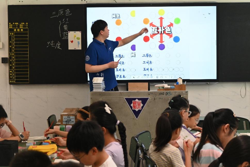 为让教育薄弱的学生体验到有趣、前沿的课程内容, “皖里鹏程”支教队于2025年7月奔赴安徽宿州,展开了为期10天的支教和调研。课程上以“兴趣课”+“基础课”+“活动课”的模式进行多元领域、专业知识的教授,采用“访谈”+“问卷调查”+“政策宣讲”结合的方式进行调研,成果颇丰。