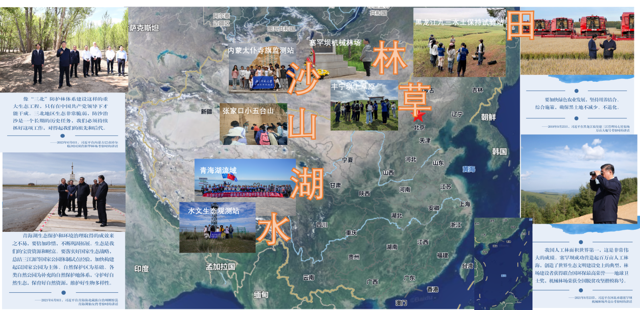 为学习落实党的二十大精神、扎实贯彻学校第十四次党代会精神,以北京师范大学“青年服务国家 强师筑梦未来”学生暑期社会实践为牵引,地理科学学部团委以“美丽中国 青春行动”为主题,依托学部优势科研资源,结合学部野外实习实践课程,鼓励学生积极开展社会实践,在实践中认识国情、了解社会、践行学科、担当使命。今年,学部组建8支实践队,其中,重点项目4支队伍、一般项目4支队伍,分别奔赴青海、贵州、四川、黑龙江等地,践行生态文明理念,领悟山水林田湖草沙系统治理理念,引导学生为美丽中国建设贡献青春力量。