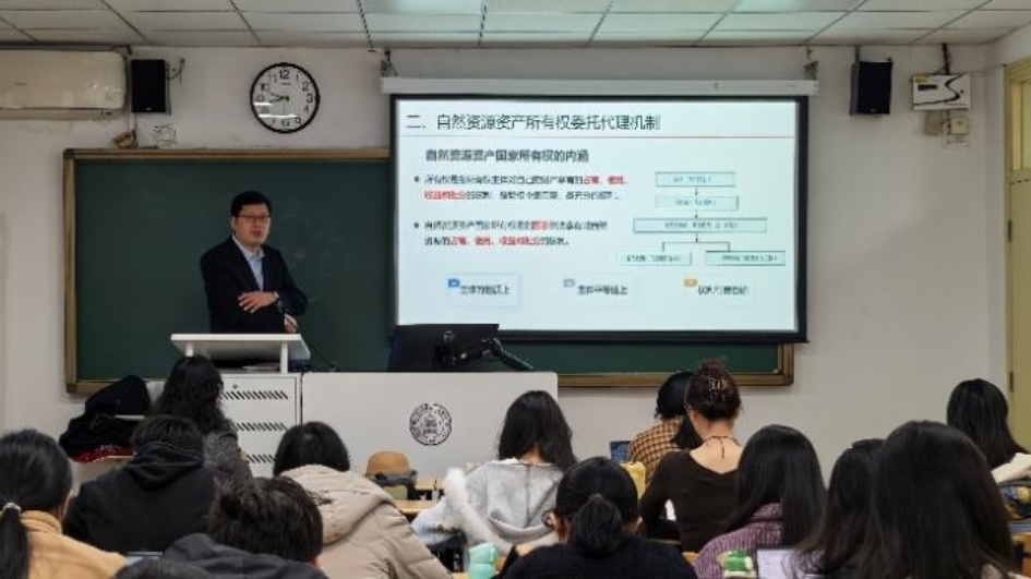 2025年12月3日上午,地理科学学部自然资源学院在北京师范大学教二楼408教室顺利举办第12期资源科学前沿系列讲座。本次讲座由刘颖慧教授主持,邀请了北京林业大学李广泳教授担任主讲嘉宾。讲座围绕自然资源资产权益管理主题展开,40余名师生在场聆听。