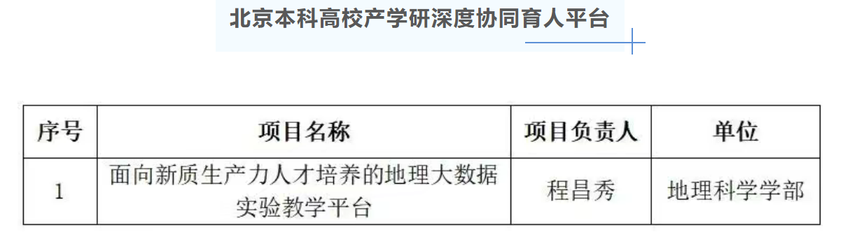 近日,北京市教育委员会公布了2025年北京高校本科教学项目建设评选结果,地理科学学部取得优异成绩。朱华晟教授的《产业地理与规划》荣获北京市高校优质本科课程,程昌秀教授团队的“面向新质生产力人才培养的地理大数据实验教学平台”荣获北京本科高校产学研深度协同育人平台,充分彰显了学部教师扎实过硬的本科教学实力与育人水平。