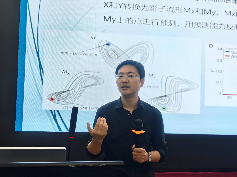 陈子悦教授作题为“地理大数据与时空因果推断”的学术报告。他以“巧克力消费与诺奖得主数量”等经典伪相关命题为例,强调了区分相关关系与因果关系的重要性;系统梳理了SEM结构方程模型、格兰杰因果检验、收敛交叉映射方法等经典因果模型;针对地理数据时间波动微弱而空间异质性强的特点,提出了时空因果推断框架,将时间滞后概念拓展至空间邻近滞后;最后,他展示了团队在大规模火灾后植被恢复、建筑存量隐含碳核算、夜间灯光暴露对居民情绪影响等研究中的实践成果。陈教授强调,研究工作应服务国家重大战略需求,将发表高水平论文与解决现实问题相结合。