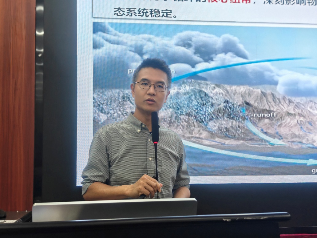 缪驰远教授作题为“从有数到可信:区域降水估算的进阶之路”的学术报告。他借用“手表定律”阐述了多源降水数据带来的偏差与不确定性;随后围绕“测不准”“估不清”“不够测”三个核心挑战展开论述,通过径流系数明显偏大、实际蒸散发超过降水、冰芯雪水当量大于降水量三个关键证据,揭示了青藏高原等地降水被严重低估的现实;进而提出了“雪水资源悖论”,分析了模式对未来升温与积雪趋势预估矛盾的成因;介绍了基于全球台站密度评估与优先选址的研究工作。最后,缪教授分享了个人投稿的经验与体会,与会师生深受启发。