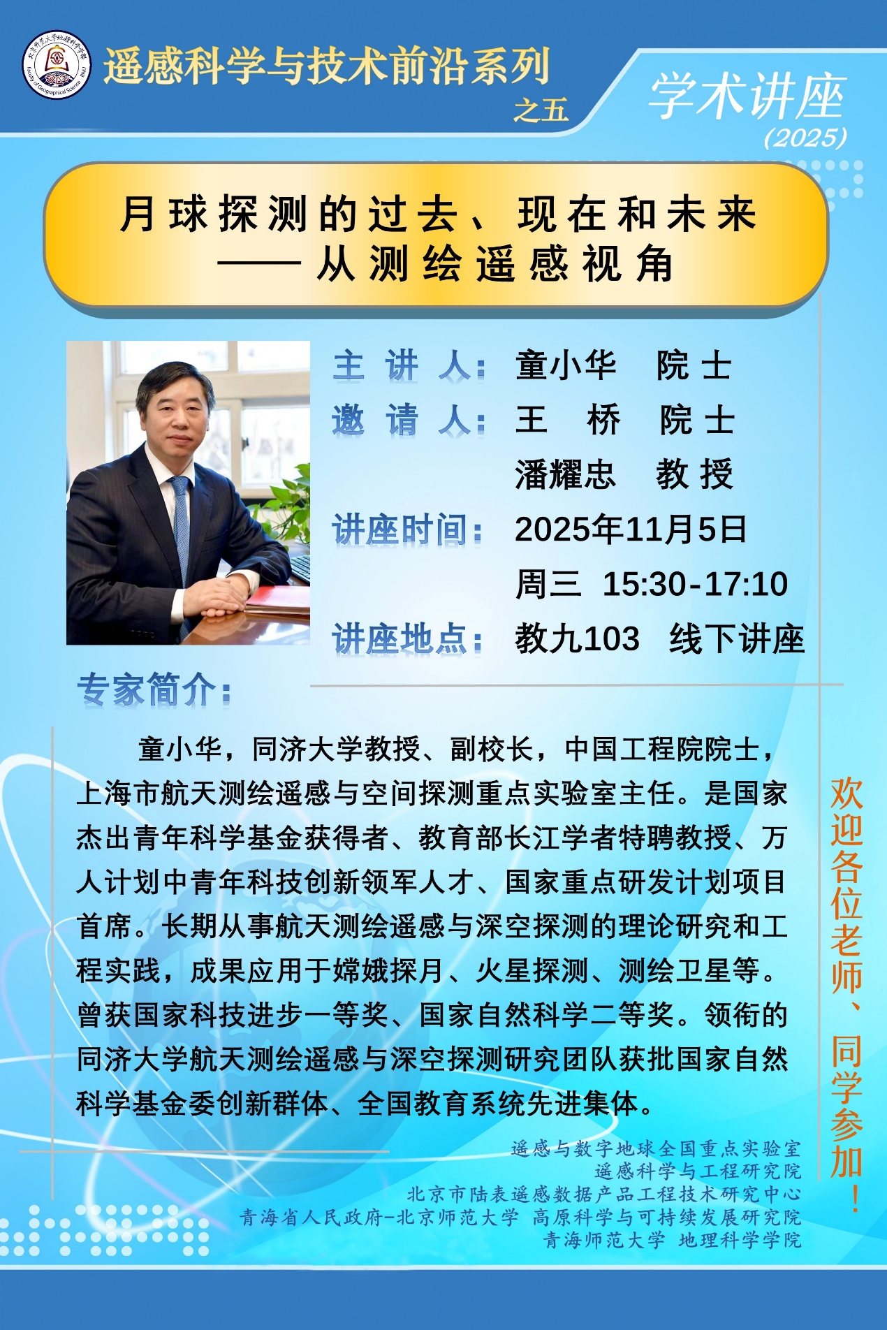 【11月05日】童小华 院士,月球探测的过去、现在和未来——从测绘遥感视角